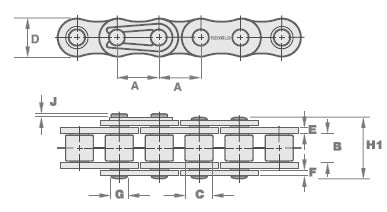 Renold Synergy 140-1-NO12 ANSI / AS Simplex Chain Single Cranked Cottered Link 1-3/4 inch Pitch