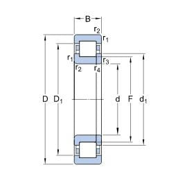 SKF NUP Series Single Row Cylindrical Roller Bearings: The outer ring of this type has two integral flanges around which the rollers are assembled, the inner raceway has one flange, the supplied none integral ring forms the other flange, enabling the ease of assembly and permitting axial location in both directions Benefits: Axial location, ease of assembly and fitting |